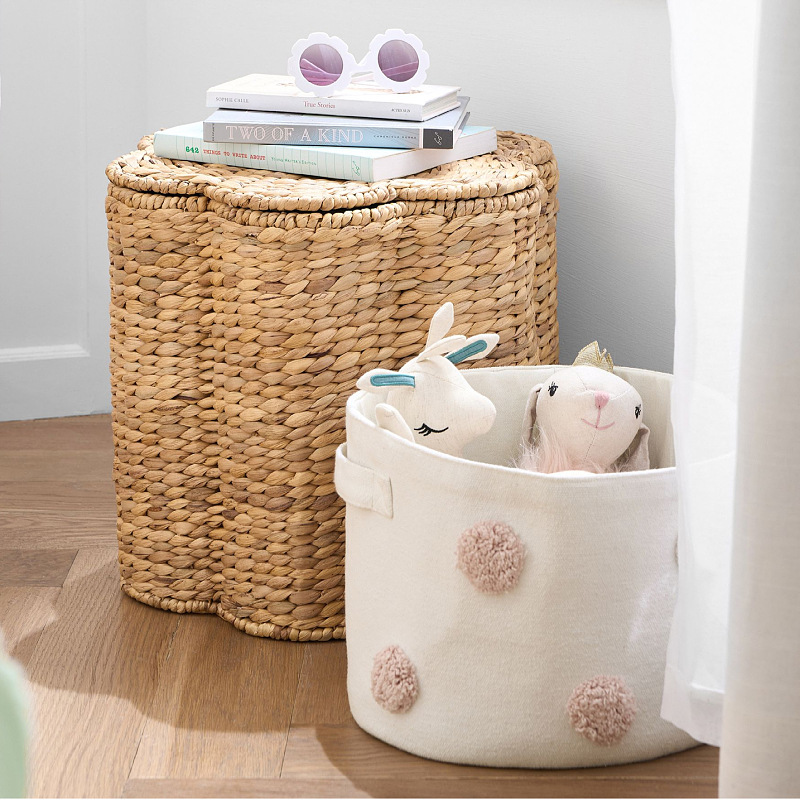 This storage basket adopts traditional handweaving techniques, with each warp and weft interwoven with the craftsman'shard work and wisdom. The woven fabric is comfortable and breathable, with awarm and jade like touch, allowing people to feel the warmth and warmth ofnature at the touch. At the same time, the flower shaped elements incorporatedduring the weaving process add a touch of softness and elegance to this storagebasket.