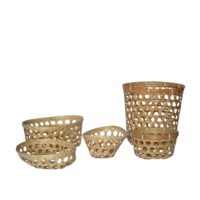 This series of baskets are all made ofhigh-quality bamboo as raw material, carefully selected and processed topreserve the natural color and texture of bamboo. Craftsmen use the bambooweaving techniques passed down from generation to generation to ingeniouslyweave thin bamboo strips into baskets, with each warp and weft interwoven withthe craftsmen's hard work and wisdom. The clear and visible texture of bambooweaving not only showcases the natural beauty of bamboo, but also endows thebasket with a unique texture and durability.