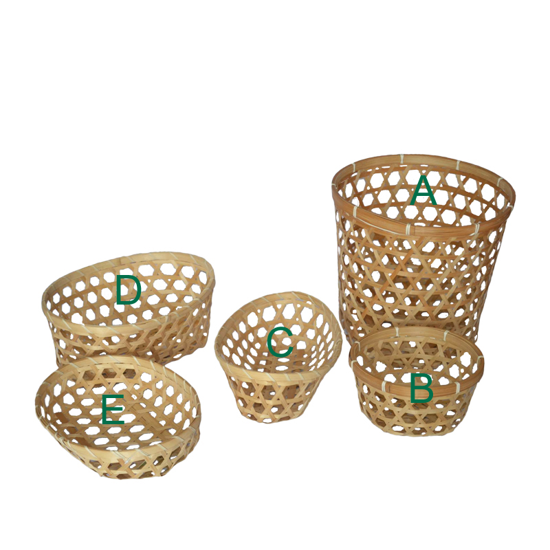 We offer six different sizes and shapes ofbaskets to meet your diverse needs. From left to right: